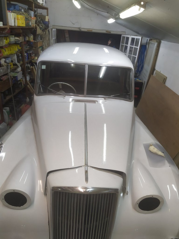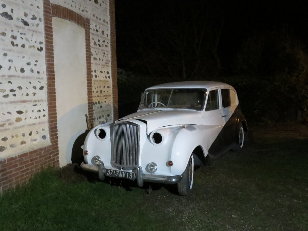 Je n'identifie pas ce beau carrosse ,j'ai plus qu'un doute ...je crois reconnaitre le pare choc AV de ma Bentley S1 "all steeel metal" mais pas la calandre avec son trou pour je suppose la manivelle de démarrage et pas le parebrise AV en deux morceaux...Les Jaguars MK 6 et 7 ont bien le parebrise en deux morceaux mais pas ce pare choc...pas la calandre des Austin A 70 ...il est tard ,la nuit porte conseil ...
